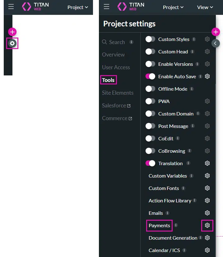 Titan Web lets you configure different payment types and add them to your Web project. Parameters from the project are available in the selected payment interface. Salesforce fields can be updated upon payment.